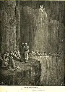 Dante and Virgil meeting Sapia in Purgatory, as illustrated by Gustave Doré
