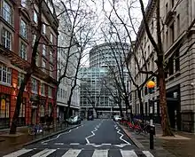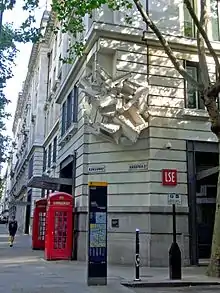 The north side of Sardinia street is wholly taken up by the New Academic Building of the London School of Economics (LSE), formerly the Public Trustee Office. In 2009, a sculpture by Richard Wilson was installed on its corner with Kingsway.[1][2] The K2 telephone kiosk on that corner is grade II listed with Historic England.[3]