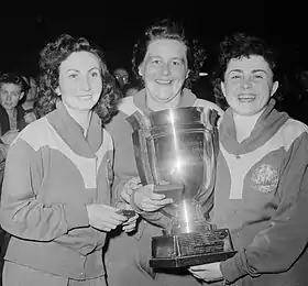 Angelica Rozeanu, Sari Szász and Ella Zeller at the 1955 World Championships
