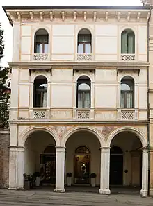 The family of Leonardo, Giovanni Antonio, Benedetto Maria, Valentin and Eugenio had many lands, houses, palaces and other assets in Vicenza, Creazzo, Colzè, Monticello Conte Otto and Cavazzale throughout the 18th century.[45] At the same time, the family of Zuanne and his son Iseppo had houses and part of the Civena Palace in Vicenza, which was designed by Andrea Palladio, as well as land and a country seat in Montemezzo, a town next door to Creazzo.[47][45] Pietro, between 1772 and 1774, was administrator of the important Mount of piety charitable entity in Vicenza,[48][49] and Lodovico, active at the end of the 18th century, was a priest and poet, leaving sonnets, panegyrics and a De Profundis.[46]