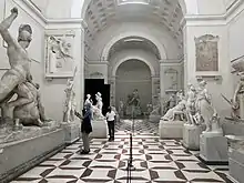 As heir, the bishop left his only niece, Antonietta Sartori Bianchi, who received from her uncle an important collection of Canova's works.[130] She collaborated in the organization of the Museo Canova,[131] participated in the creation and was a tireless collaborator of the Institute of Regular Clerics of the Schools of Charity of Possagno, conceived by her second husband, Count Filippo Canal, and generously financed by Sartori. She was praised by Domenico Villa, archpriest of Bassano, as having "rare qualities of mind and heart",[128] and by Laura Roberti-Lugo, who called her a "most cultured lady" when she dedicated to Antonietta a volume of chronicles in the form of epistles by her late husband, the literary Ambrogio Lugo, published in 1868.[132] When she died, around 1874, Antonietta left a legacy in her will of one hundred thousand lire for the foundation, in Crespano, of an institute for poor children born in Crespano and Possagno, which came to be legally constituted on May 6, 1880, under the name Opera Pia Bianchi-Canal.[133]