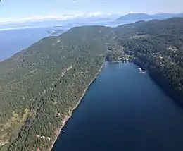 Saturna Island is a mountainous island, about 31 square kilometres (12 sq mi) in size, in the Southern Gulf Islands chain of British Columbia, Canada.[2] It is situated approximately midway between the Lower Mainland of B.C. and Vancouver Island, and is the most easterly of the Gulf Islands. It is surrounded on three sides by the Canada–United States border. To the north is Point Roberts, Washington, and to the east and south are the San Juan Islands. There is a First Nations reserve on the island for the Tsayout and Tseycum Nations.[3] The island has a permanent population of around 350, however, this number increases during the summer season.