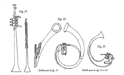 - ↑ Berlioz, Hector (1855). Grand Traité d'Instrumentation et d'Orchestration Modernes. Paris: Schonenberger. p. 234. I am assuming that Halévy's "sax-horn au pistons en Si♭" and "Sax-horn contre Alto en Si♭" are the same instrument.