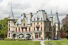 It is situated in the Schadaupark, and was built between 1846 and 1854 according to the plans of Pierre-Charles Dusillon in the Gothic Revival style, for the banker Abraham Denis Alfred de Rougemont