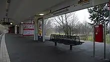 Scharnweberstraße is a Berlin U-Bahn station located on the U6. It was constructed by B. Grimmek in 1958. Due to the extension of the U6, the trains had to go above ground after Kurt-Schumacher-Platz station. Soil for the embankment on which the line is built came from excavations for the U9, which was being built in parallel. As the trains had to go above ground, Berliner Verkehrsbetriebe (BVG), who operate the Berlin U-Bahn, had to install windscreen wipers on the trains.[1]