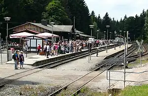 Schierke station (German: Bahnhof Schierke) is the railway station in the village of Schierke operated by the Harz Narrow Gauge Railways on the Brocken Railway in the Harz Mountains of central Germany. Schierke itself lies as the foot of the highest mountain in the Harz, the Brocken, and is located in the borough of Wernigerode in the federal state of Saxony-Anhalt.