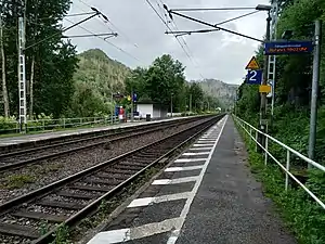 Schmilka-Hirschmühle station (German: Bahnhof Schmilka-Hirschmühle) is a railway station[1] on the Děčín–Dresden-Neustadt railway for the village of Schmilka, Saxony, Germany. The station is located across the Elbe river and can be reached from Schmilka by ferry. They station lies in the Reinhardtsdorf-Schöna municipality.