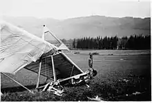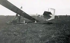 The Grunau 9 first flew in 1928. The following year, Schneider made changes to the tail and introduced a new and (it turned out) temporary naming convention involving the year, redesignating it as the ESG 29, though it was not a unique name.[1] After its formation in 1933, the Deutsche Forschungsanstalt für Segelflug (DFS) gave it the type number DFS 108-10.[2] The positioning of a wooden strut immediately in front of the pilot's head led to the type being nicknamed the Schädelspalter, or skullsplitter.[3] Large numbers were built and sold widely over several years.[1] At least one Dutch registered Grunau 9 remained active after World War II.