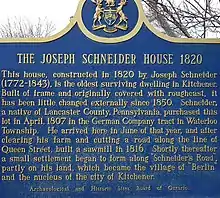 6. "Joseph Schneider Haus Historical Plaque". ontarioplaques.com. Retrieved 30 September 2018.