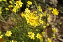 Schoenia filifolia is an annual herb that typically grows to a height of up to 50 cm (20 in) and has terete leaves. The heads or daisy-like "flowers" are yellow with a top-shaped to cylindrical or hemispherical involucre, depending on subspecies, the involucral bracts in five series.[2][3]