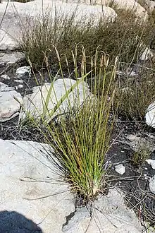 - ↑ Elliott, T.L.; Barrett, R.L.; Muasya, A.M. (2019). "A taxonomic revision of Schoenus cuspidatus and allies (Cyperaceae, tribe Schoeneae)—Part 1". South African Journal of Botany. 121: 519–535. doi:10.1016/j.sajb.2018.11.021.