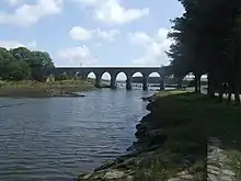 The S&S's main line was 15 ½ miles long.[2] It was one of several in Ireland built under the terms of the Tramways Act 1883.[1] It largely ran alongside roads, although a large 12-arched masonry viaduct was built over an inlet of Roaringwater Bay, and at times using gradients at steep as 1:30.[3]