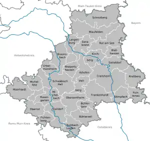 Schwäbisch Hall ([ˈʃvɛːbɪʃ ˈhal]) is a Landkreis (district) in the northeast of Baden-Württemberg, Germany. Neighboring districts are (from north clockwise) Main-Tauber, the Bavarian district Ansbach, Ostalbkreis, Rems-Murr, and Hohenlohe.