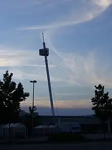 Schwarzwald-Baar-Center is a large mall in Villingen-Schwenningen, Germany. It has a striking architecture as its roof is carried by an inclined tower with its name and which is also equipped with a flight safety lamp. Schwarzwald-Baar-Center was opened on September 28, 2000 and houses 35 stores.