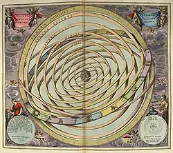 The Ptolemaic system of celestial motion as depicted in the Harmonia Macrocosmica (1661).