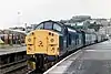 When formed in 1983, customised versions of the existing British Rail liveries were adopted, with passenger locomotives and coaching stock painted in a lightly modified version of the InterCity Executive livery. The red stripe was replaced with a saltire blue stripe, and the InterCity name was replaced with the ScotRail name. Most locomotives carried the standard InterCity Executive livery but with ScotRail branding. Diesel and Electric multiple units carried normal versions of the Regional Railways livery. In the SPT area, rolling stock was painted in Strathclyde Orange and Black.