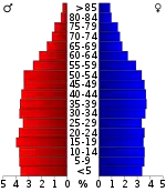 26.10% of the population were under the age of 18, 10.30% from 18 to 24, 28.70% from 25 to 44, 23.60% from 45 to 64, and 11.30% who were 65 years of age or older. The median age was 35 years. For every 100 females there were 97.40 males. For every 100 females age 18 and over, there were 94.00 males.