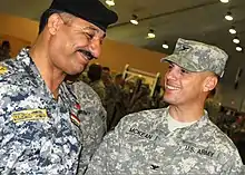 Colonel Scott McKean (right) talks with an Iraqi Police major, 2011