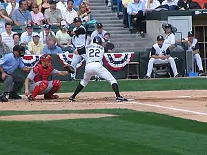 In December 2004, Podsednik was dealt to the Chicago White Sox (along with Travis Hinton and Luis Vizcaíno) for Carlos Lee. After leading all of the Major Leagues in steals the first half of 2005, he was selected to his first All-Star game via the MLB's All-Star Final Vote. He saw only defensive time in the All-Star game in Detroit that year and did not get a chance to bat.
