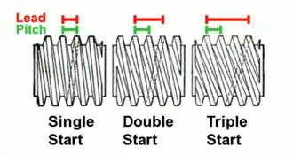 Lead and pitch are the same in single-start screws, but differ in multiple-start screws