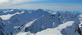 Battle Range, from summit of Typee Mountain. Scylla Mountain is centered.