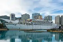 Sea World (Chinese: 海上世界; pinyin: Hǎishàng Shìjiè; Jyutping: hoi2 soeng6 sai3 gaai3) is a large tourist attraction and mall in Shekou, Nanshan District, Shenzhen. Its main attraction is the large ship, Minghua, in the center of the mall. Inside the boat, there is a hotel. Surrounding the boat, there are many restaurants and hotels including Allatore, Laofangzi, Tequilla Coyotes, baia burger, as well as many other Chinese and Japanese Restaurants.[1]