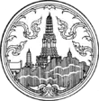 Phra Baromathat Chedi of the Wat Phra Mahathat Voramahavihan, one of the most important historical sites in southern Thailand. According to the city chronicle it was already built in 311, but archaeology dates it to the 13th century. The chedi is surrounded by the animals of the Chinese zodiac in the seal. The twelve animals represent the twelve Naksat cities or city-states which were tributary to the Nakhon Si Thammarat kingdom: the Rat of Saiburi; the Ox of Pattani; the Tiger of Kelantan; the Rabbit of Pahang (actually a city in Pahang which is said to be submerged by a lake now); a large Dragon of Kedah; a small Snake of Phatthalung; a Horse of Trang; a Goat of Chumphon; a Monkey of Bantaysamer (might be Chaiya, or a town in Krabi province); a Rooster of Sa-ulau (unidentified city, might be Songkhla, Kanchanadit or Pla Tha); a Dog of Takua Pa and a Pig of Kraburi. |