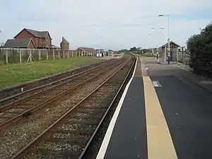 Originally the station had one platform on the inland side of a passing loop in the otherwise single track railway, there was a single siding with a crane and a small building.[3]