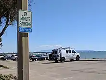 The Omer Rains Bike Trail lies outside the fairgrounds fence running along the beach and river levee.[10] Connecting the San Buenaventura State Beach to the south and Emma Wood State Beach to the north, the path is on the Pacific Coast Bicycle Route and also serves as an access point for California Coastal Trail.[11] Surfing is popular here with its point break that produces distinctive waves.[12][13]