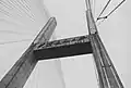 The Second Wuhan Yangtze River Bridge (Chinese: 武汉长江二桥, Wuhan Changjiang Er Qiao) is a bridge across the Yangtze River in Wuhan, Hubei province, China. It is located northeast (downstream) of the historic central area of the city's Hankou District and is the northern crossing for the Inner Ring Road. It is a cable-stayed bridge built of pre-stressed concrete, and has a central span of 400 metres (1,300 ft).[1] It is 4.678 kilometres (2.907 mi) in length (including the 1,876-metre (6,155 ft) main span) and is 26 metres (85 ft) wide. Its main bridgeheads are 90 metres (300 ft) high each, pulling 392 thick slanting cables together in the shape of double fans, so that the central span of the bridge is well-balanced on the piers and the bridge's stability and vibration resistance are ensured.