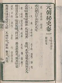 - ↑ William Hung, 'The Transmission of the Book Known as "The Secret History of the Mongols"', Harvard Journal of Asiatic Studies, Vol. 14, No. 3/4 (Dec 1951), p. 440.