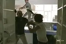 Glenn comes to the rescue as Maggie is attacked by a walker.