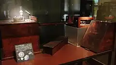 Luigi Palmieri, influenced by Mallet's 1848 paper,[17] invented a seismometer in 1856 that could record the time of an earthquake. This device used metallic pendulums which closed an electric circuit with vibration, which then powered an electromagnet to stop a clock. Palmieri seismometers were widely distributed and used for a long time.[18]