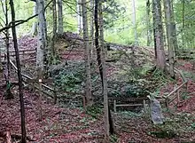 Sekirišče is the site of a mass grave associated with the Second World War. The Pavlin Shaft Mass Grave (Slovene: Grobišče Pavlinovo brezno), also known as the Repičnik Shaft Mass Grave (Grobišče Brezno Repičnik), is located 1.5 kilometers (0.93 mi) northeast of Krvava Peč on the south slope of Mount Repičnik. It contains the remains of unidentified victims.[5][6]