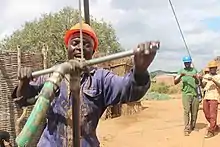 Manual drilling of a well in Tanzania
