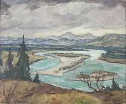 She enrolled in the private painting school operated by the Baltic German painter, Elise Jung-Stilling. In 1903, the Imperial Academy of Arts awarded her a diploma that enabled her to become a teacher in a middle school for girls.[1] While teaching, she also took private lessons from Janis Rozentāls and studied landscape painting with Vilhelms Purvītis.