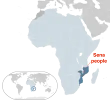 The Sena people are a Bantu ethnolinguistic group with origins in northwestern region of Mozambique , Sofala Province and Zambezia Province.[1][2] They are also found in Malawi[3] and eastern Mozambique near their respective borders with Mozambique.[1]