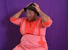 She is known for her six-year performance work Ijermani Lam which "materializes the condition of waiting"[9] by wearing the same red dress every day from the 1st of October 2013 to the 1st of October 2019. The original dresses were part of the group the exhibition, "Made Visible. Contemporary South African Fashion and Identity" at the Museum of Fine Arts in Boston (February–May 2019).[10] Her work taps into cultural memories using, printing archival materials such as newspapers and photographs on colonial textiles. It tells stories of black women in South Africa, such as Sarah Baartman or her mother, Theodora Mpofukazi Marasela, through series such as Covering Sarah Baartman (2011), Sarah, Senzeni and Theodorah Come to Joburg (2011), Theodorah, (2005),[11] Waiting for Gebane (2017), Izithombe Zendawo Esizithandayo (2017) and builds an "intimate archive",[12] giving voice to experiences of Black women.
