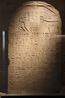 A tablet commemorates the making of the underground burial chamber for the third Apis to live under Ptolemy II, including how long each phase took:[43][74]