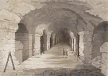 Drawing of the "Greater Vaults" lit by candles, shortly after excavation.