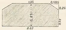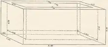 Linant de Bellefonds calculated one of the large sarcophagi of the Greater Vaults to have a total mass of 62 tonnes (137,000 lb) at most: 37.6 tonnes (83,000 lb) for the body and 24.4 tonnes (54,000 lb) for the lid. The stone had external dimensions of 2.32 metres (7.6 ft) in height and width, and 3.85 metres (12.6 ft) in length. Internally, the rectangular hollow was 1.73 metres (5.7 ft) high, 1.46 metres (4.8 ft) wide and 3.17 metres (10.4 ft) long. The lid had a height of 98 centimetres (3.22 ft).[5]