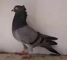 Small to medium compact pigeon with flat vertical crest. Stance to be at a 45 degree angle. Lively appearance as if ready to fly.