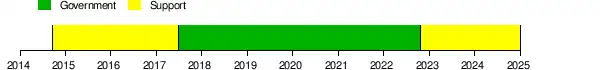 Year Leader Popular vote  % of popular vote # # of seats Seat change Coalition Status Ref.