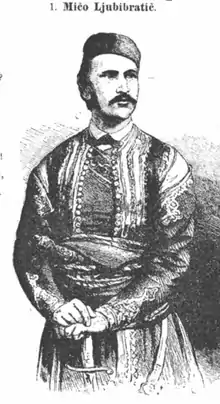 According to the historian Dušan T. Bataković, around one quarter of rebel leaders (voivodes) of the Serbian Revolution were born in modern-day Bosnia and Herzegovina or had their roots in the region of Bosnia or Herzegovina.[41] Mateja Nenadović met with local Serb leaders from Sarajevo in 1803 in order to negotiate their part in the rebellion, with the ultimate goal being that the two armies meet in Sarajevo.[41]