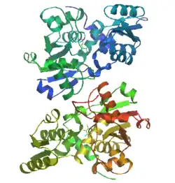 In humans, the serine racemase protein is encoded by the SRR gene.[7] Serine racemase may have evolved from L-thre-hydroxyaspartate (L-THA) eliminase and served as the precursor to aspartate racemase.[8]