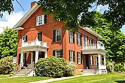 The 2+12-story brick house was built in the 1820s by Seth Davis, a locally prominent teacher and real estate investor, and is one of the finest Greek Revival houses in the city. It is unusual for having brick detailing instead of wood for the cornices. Seth Davis was a major investor in West Newton's Railroad Hotel, and owned much land in the area. Davis Street, Davis Court, and the Davis School are all named in his honor.[2]