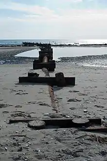 Ocean outfall pipes in Cape May, New Jersey, United States – pipes exposed after the sand was removed by severe storm