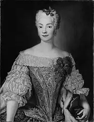 While there is no extensive documentation of Frederick having any intimate heterosexual relationships, it is speculated that he had a short relationship with Anna Karolina Orzelska, a countess five years his senior and the illegitimate daughter of King Augustus II the Strong of Saxony. The two first met in Dresden in February 1728 when Frederick was only sixteen and on a diplomatic visit with his father. Augustus allegedly attempted to divert Frederick's attentions away from his illegitimate daughter by offering him the nude opera singer called La Formera on a couch, whom Frederick was not attracted to.[56] While Frederick's father was opposed to the relationship with the countess, the two allegedly began a secret love affair, with Frederick dedicating several poems and music compositions to her. Some have claimed that Orzelska was Frederick's first and only mistress[57] - conjectures based largely on the wishful thinking of his sister Wilhelmine who didn't like her brother's same-sex liaisons with young pages.[58] It has also been suggested that Orzelska was attempting to gather intelligence on Frederick and Prussia.[59] However, when Augustus and the countess, who was now pregnant, paid a return visit to the Prussian court, Frederick was frustrated and turned to unspecified other forms of dissipation.[60] Orzelska was also known for frequently dressing in men's clothing and military uniforms, for partaking in men's activities and for having an interest in dancing, which may have attracted young Frederick's attention. The alleged relationship between the crown prince and Orzelska was cited by some 19th century German historians as evidence against claims of Frederick's homosexuality.[61]