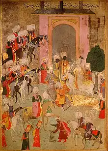 Sultan Selim II receiving Seyyid Lokman and Grand Vizier Sokollu Mehmed Pasha in the Edirne Palace, from the Şahname-ı Selim Han