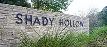 Shady Hollow is a census-designated place (CDP) in southwestern Travis County, Texas, United States, and is partially in the City of Austin. It is located ten miles (16 km) southwest of Downtown Austin, near the Travis/Hays county line.[3] The population was 4,822 at the 2020 census.[4]